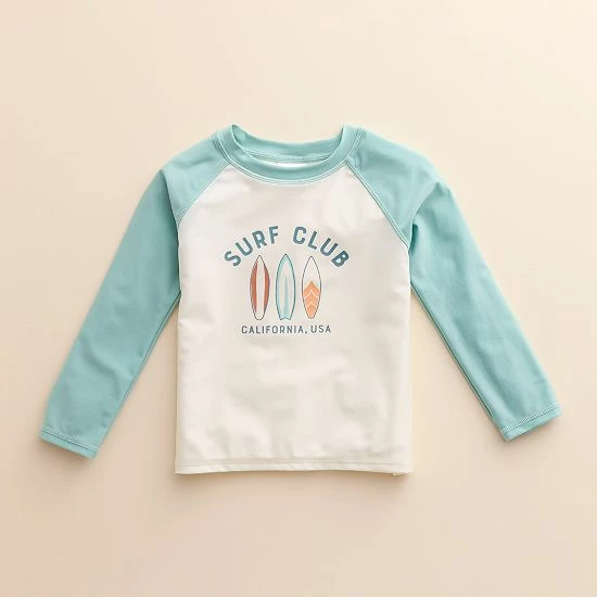 Your little one will make a splash in the sustainable style of this baby and toddler rash guard.